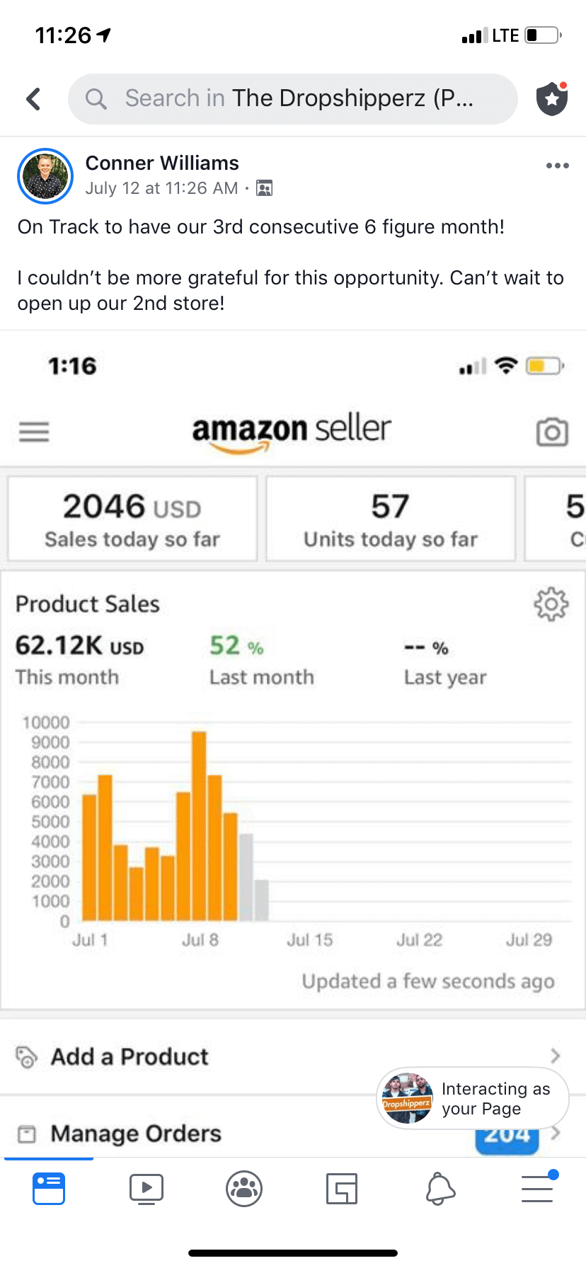 We specialize in Amazon Dropshipping (NOT FBA). You can either learn and apply the skills on your own (our course), which is great but time consuming, or you can use our automation service, in which your seller account would be handled by our team of virtual assistants overseas. Once we fully set you up, we would have the team run your account. This would include Product Research, Order Fulfillment, Returns, Customer Service, etc. The ultimate goal is to hit $100K in sales within 12-18 months. Profit margins are aimed at 10-15% with it fluctuating month by month. Neither the sales nor the profit margins are in anyway a guarantee and this should be thought of as a long term investment.